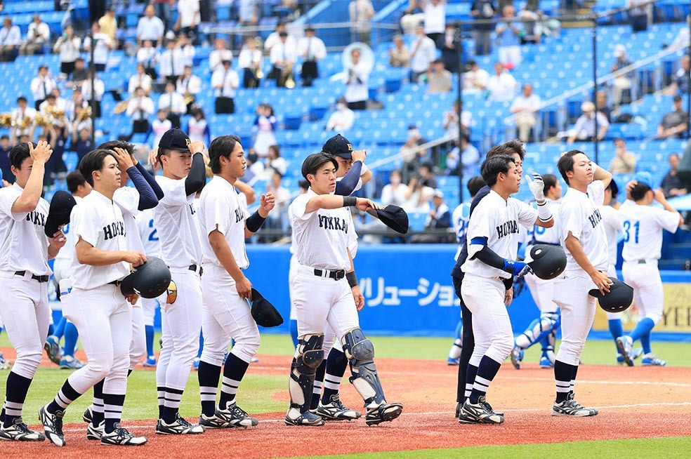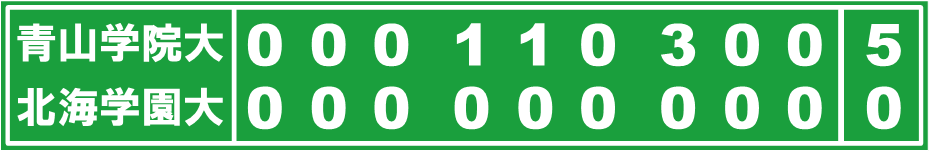 北海道勢最高成績に並ぶ4強入りを懸けて王者・青山学院大に挑んだ北海学園大だったが、0-5で完封負けした。今大会3試合目で初先発した148キロエース・木村駿太(4年、札幌国際情報)が7回0/3で3失点(自責2)と好投したが、2番手の高谷舟投手(4年、札幌日大高)が2失点。打線も投手陣を援護することができず、6安打0封負け。ジャイアントキリングを起こすことはできなかったが、この経験を北海道に持ち帰り、全国常勝軍団に成長する。