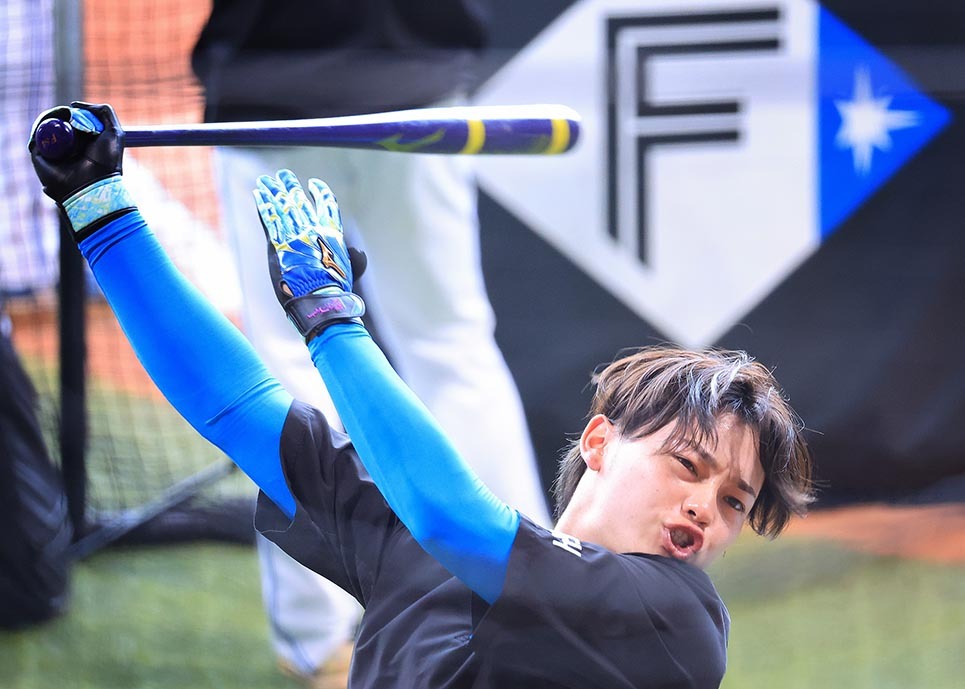 2軍調整中だった田宮が25歳の誕生日に1軍再昇格。練習前、報道陣に囲まれると「いや~、帰ってこられて良かったです。たくさん鎌ケ谷でファンの人たちに誕生日、エスコンで待っていますと言われていたので、なんとか間に合って良かったです」と笑顔をのぞかせた。