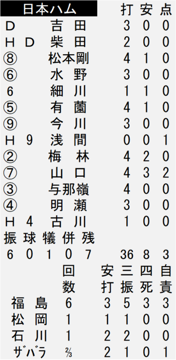 ▼▼▼日本ハムの投打成績は以下▼▼▼