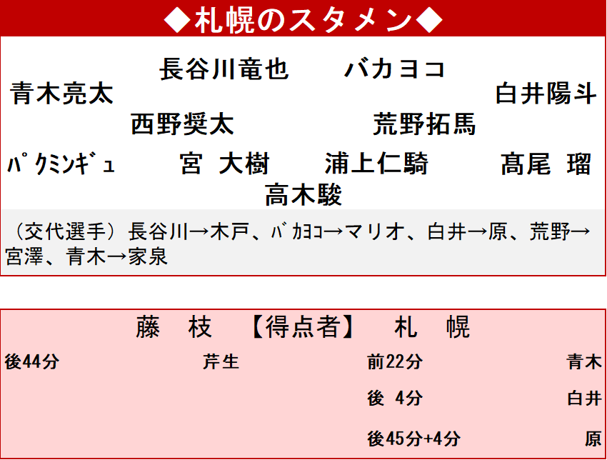 リーグ後半戦最初の一戦。札幌はGK菅野孝憲(41)の負傷もあり、長期離脱から復帰したGK高木駿(36)が2シーズンぶり出場で先発した。