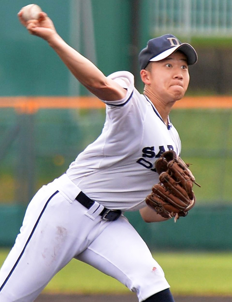 もう負けるわけにはいかない。エース・半田が満を持して、円山のマウンドに上がった。130キロ中盤の力強い直球を投げ込む。得点圏に走者を背負っても動じることなく、スコアボードに「0」を刻んだ。5回まで無失点に封じ、お役御免。完璧な投球ではなかったが、エースとして夏の初戦を勝利に導いた。「ちょっと制球に苦しんだところがあったが、変化球もまとまっていたので、立て直すことができたところは良かったと思います」と振り返った。