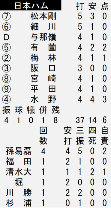 ▼▼▼日本ハムの投打成績は以下に▼▼▼