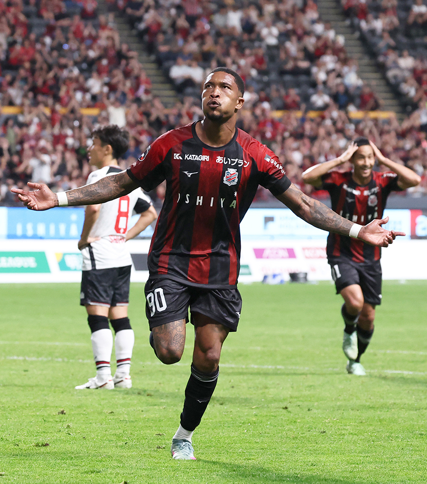 2万2000人を超える観衆が、ゴラッソに酔いしれた。来日初得点は、ゴールへの嗅覚と巧みなシュートテクニックが凝縮された一撃だった。