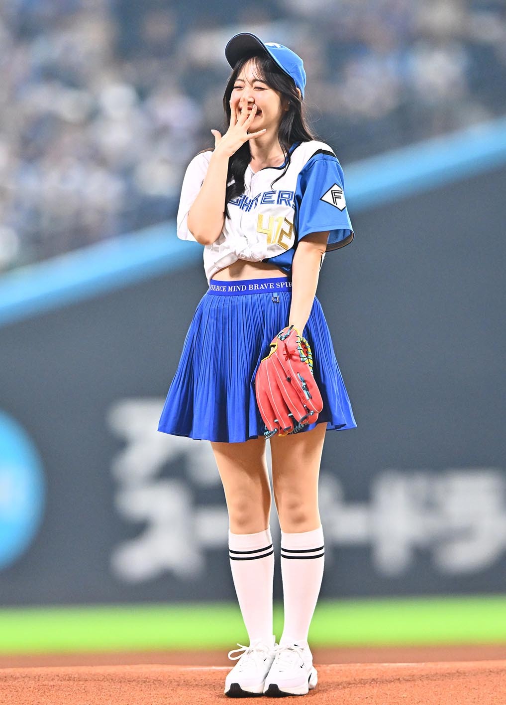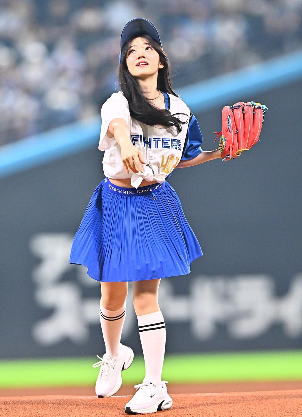 ライブでは「最強の推し!」、アイドル時代の楽曲「初恋サイダー」を披露。捕手役の郡司を目がけて投げた投球は右に大きく逸れてしまい、口元を手で覆うキュートなしぐさも見せた。終始、笑顔で取材に応じた一問一答は以下の通り。