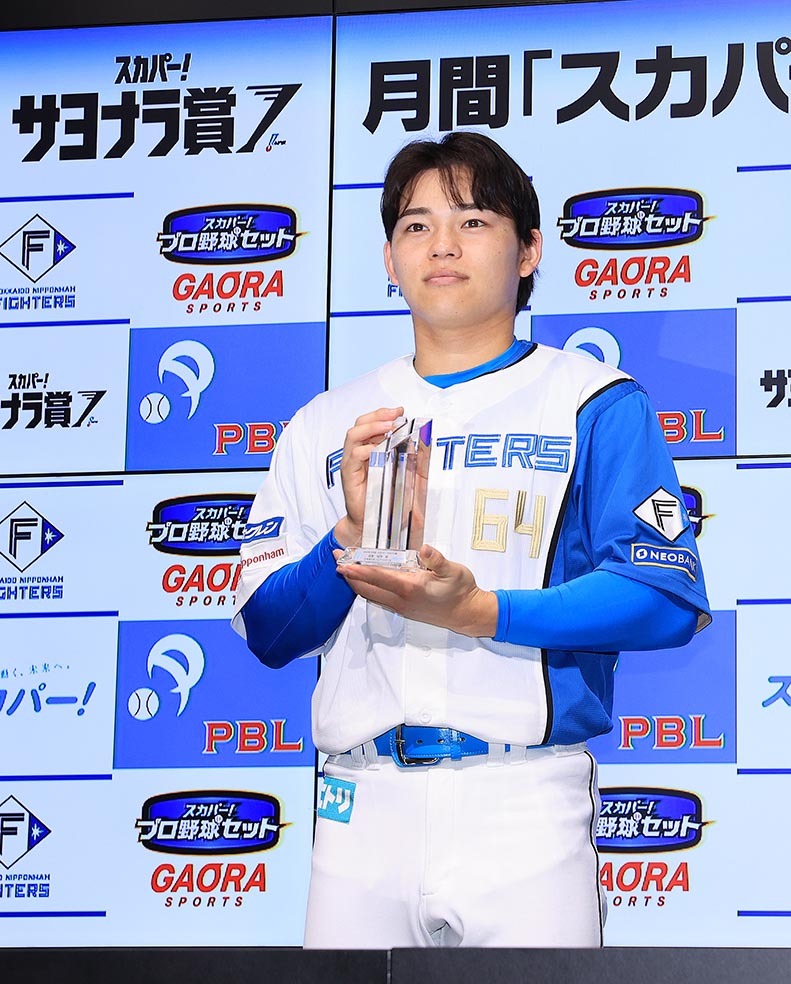 今回対象となったのは、7点ビハインドを跳ね返して勝利を収めた6月15日、広島戦(エスコン)の十回に放った自身初のサヨナラホームラン。受賞の喜びを語った記者会見での一問一答は以下の通り。
