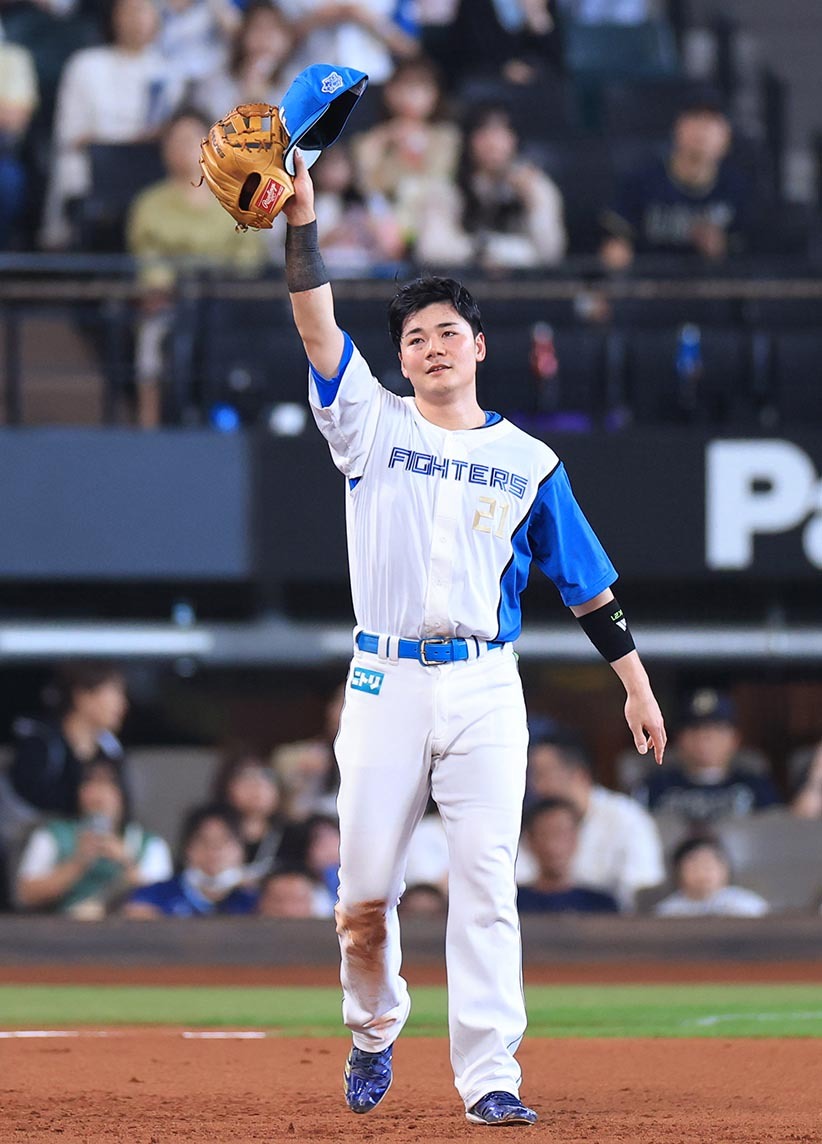 「僕たちのいろんな姿を皆さんに見てほしいので、またあしたもエスコンに足を運んでいただいて、みんなで一緒にあしたも勝ちましょう。お願いします」