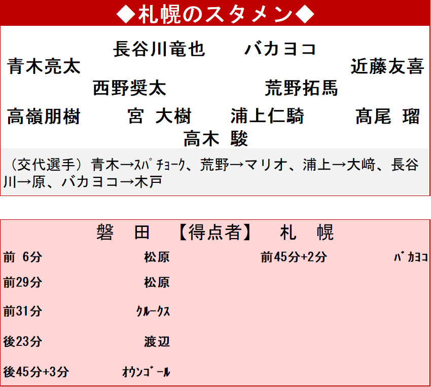 札幌は高嶺を中盤に上げ、DF西野奨太をボランチからCBに下げて4バックに戻して立て直しを図るが、時すでに遅し。後半アディショナルタイム3分には、相手に自陣左サイド深くをえぐられ、クロスが味方DFに当たってオウンゴールを喫してしまった。