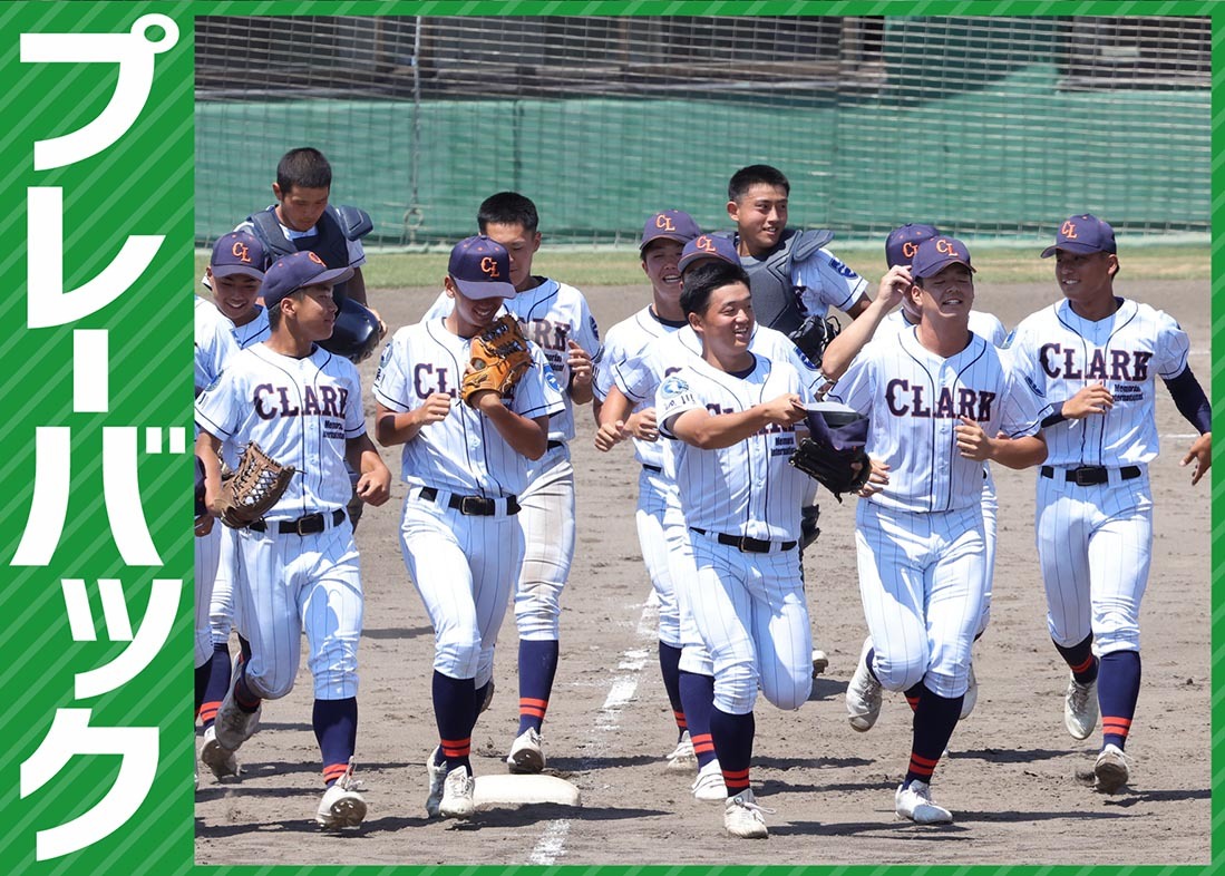 クラークは六回まで3安打に抑えられていたが、七回、ようやく打線がつながった。先頭の千葉丈瑠捕手(3年)が左前打で足がかりを作ると、2死三塁から9番・穴田晃生遊撃手(2年)が左前適時打で同点。すぐに試合を振り出しに戻した。