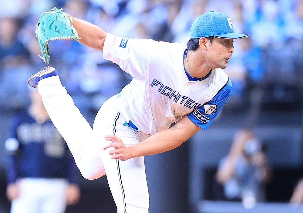 福島が毎回ランナーを出しながらも、粘りの投球で5回を無失点で投げきった。ともに鎌ケ谷で汗を流してきた後輩右腕が懸命につないだ勝利へのタスキ。六回から受け取った背番号20が、今季2度目のエスコンのマウンドで躍動した。