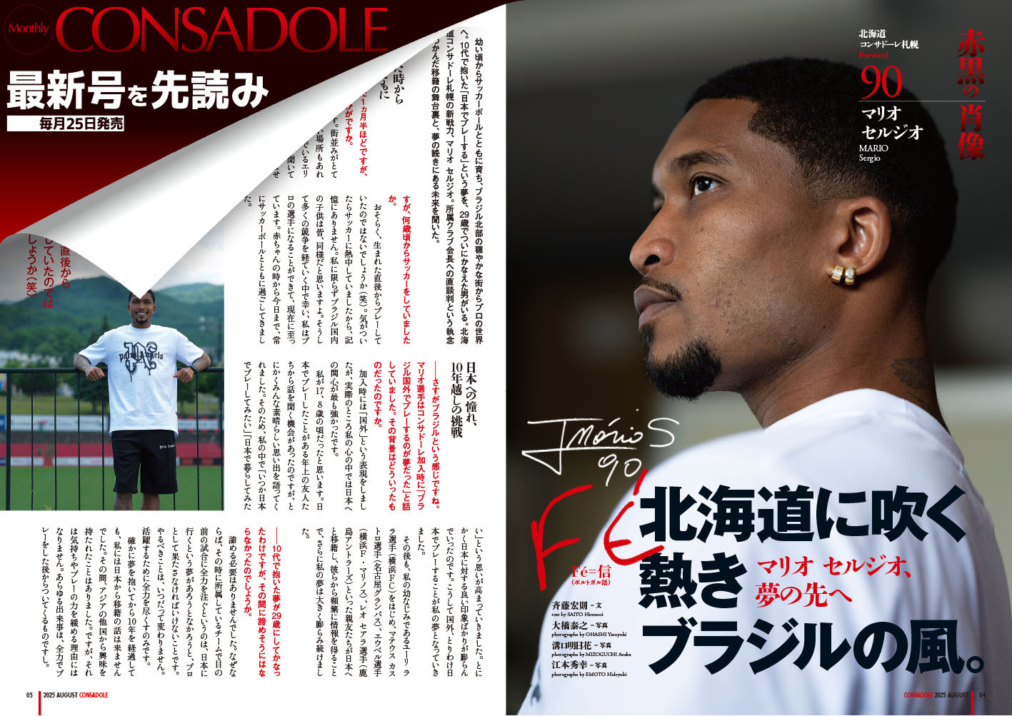 【月刊コンサドーレ8月号】マリオ セルジオ特集「北海道に吹く熱きブラジルの風」《赤黒の肖像》