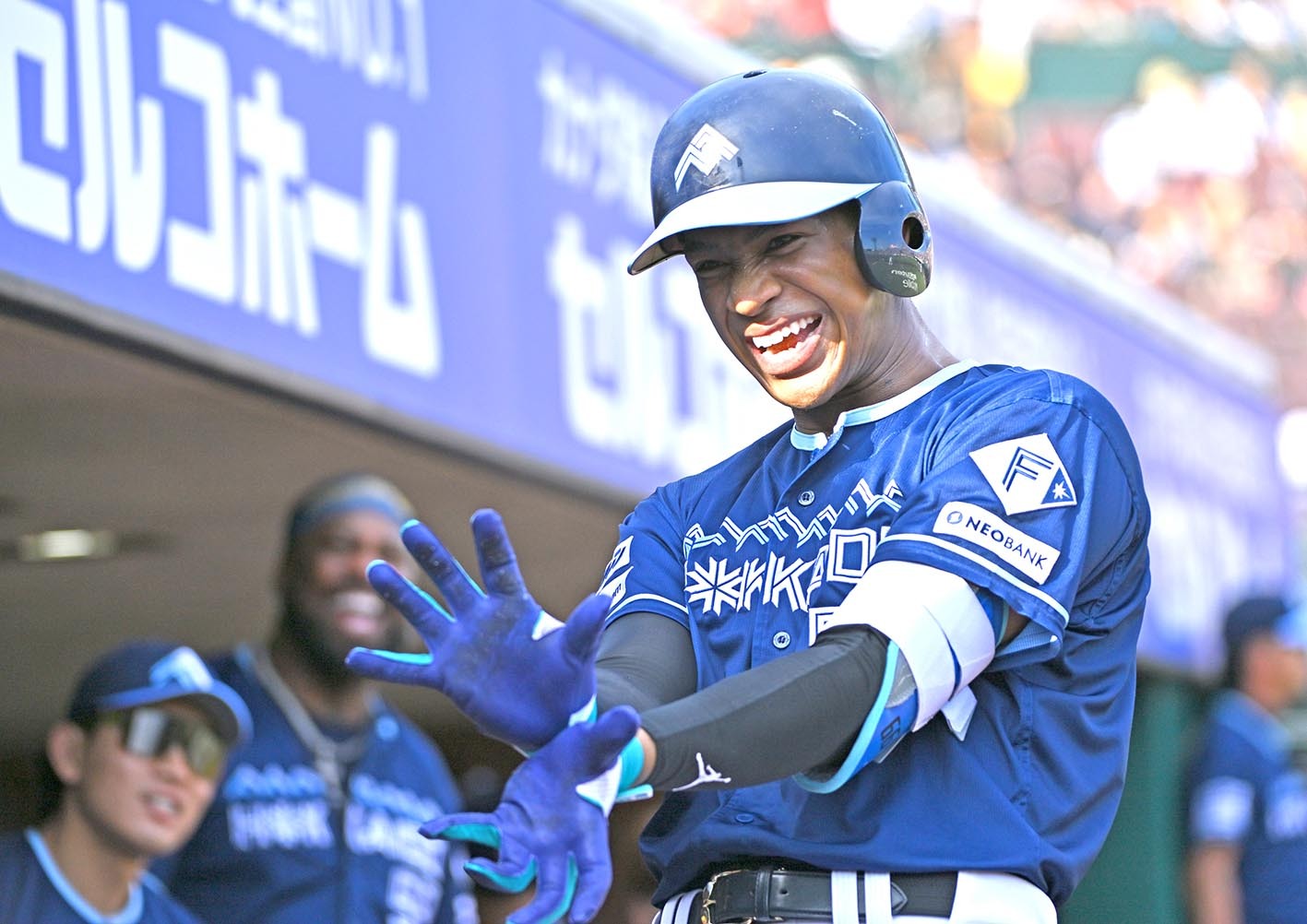 だがこの日の〝万波劇場〟は一発だけでは終わらなかった。七回2死の場面で、この日4度目の打席に立つと、楽天・宮森のストレートを、今度は鋭い弾道でレフトスタンドへ。うれしそうにダイヤモンドを一周すると、勇躍舞い戻った一塁ベンチ前で、広げた両手を縦に合わせて突き出すパフォーマンスを披露した。「僕らの世代で『イナズマイレブン』がめっちゃ流行っていて、エイリア学園のゼルの『ガニメデプロトン』という技です。最近(水野)達稀が1話から振り返って見出して、その話ばかりしていて。久しぶりに見たらおもしろすぎて、もし打ったらこれをやりたいと思っていて」。相性の良い舞台で、身も心も躍る活躍ぶりを発揮した。