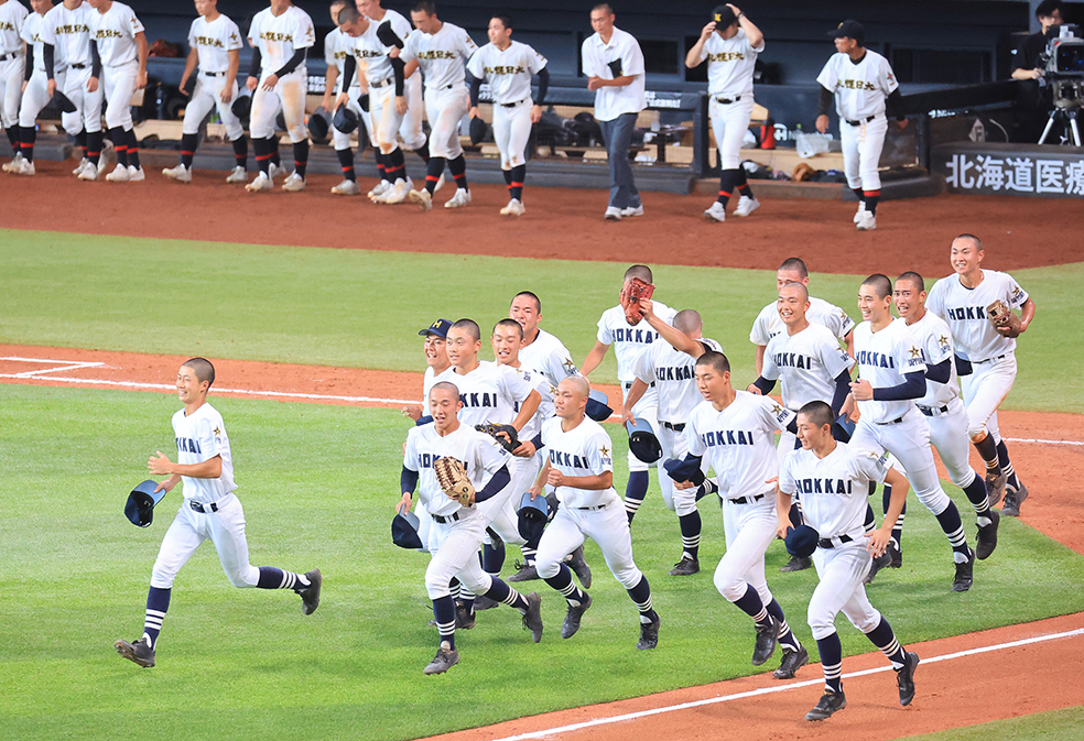 2年ぶりに南北海道の頂点に立った。佐藤主将は「秋に負けてからずっと悔しい思いをして、辛い練習をしてきたので、やっと成果が出た」。昨秋は全道大会決勝で東海大札幌高に敗退し、あと一歩のところで聖地行きを逃した悔しさを糧に猛練習。春季全道大会と今大会を制するなど、今年に入って公式戦では負けなしで駆け上がった。