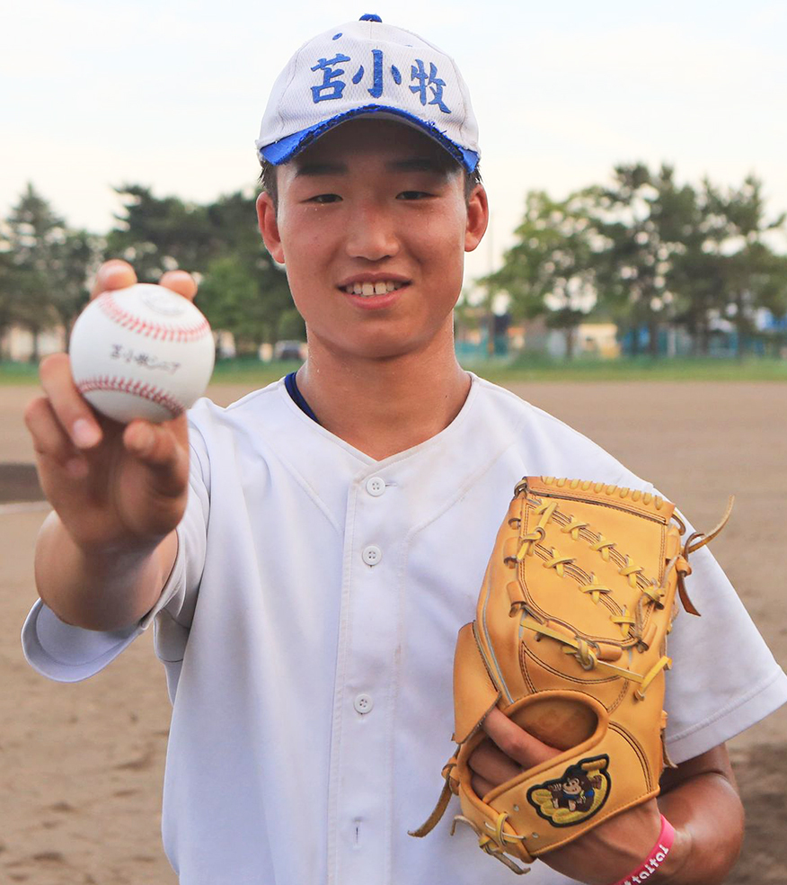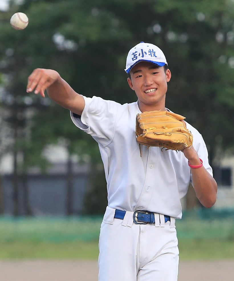 182センチの本格派。幼稚園から整列で最後列を譲ったことはない。少年野球の苫小牧・泉野イーグルス時代には、日本ハムファイターズジュニアに選出された。最速138キロの直球と、横スライダーとチェンジアップを駆使する。「基本は三振を取りに行くスタイル。テンポよくしっかりアウトを取れて、バッティングのリズムに繋げられるようなピッチングが課題。夏には140キロを出せるように頑張りたい」とキッパリ。浜谷千春監督(71)は「今ならきっと140キロ出ると思う。1年生では全国でも数人、いるかいないかの投手」と将来性に太鼓判を押す。