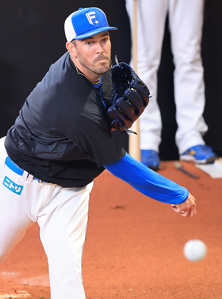 久しぶりのエスコン帰還に「戻って来られてうれしいです」と笑顔を見せた助っ人右腕。「2軍に落ちてからずっと、少しずつですけど、右肩上がりにやれているのかなという印象です。スピードであったり、ほかの変化球、体のことについても、どんどん良くなっているという自負はあるので、楽しみです」。1軍での復帰登板を心待ちにしている。