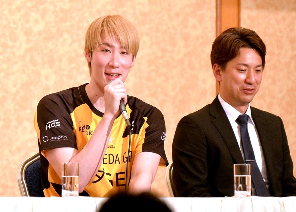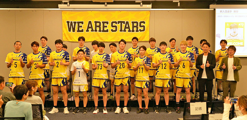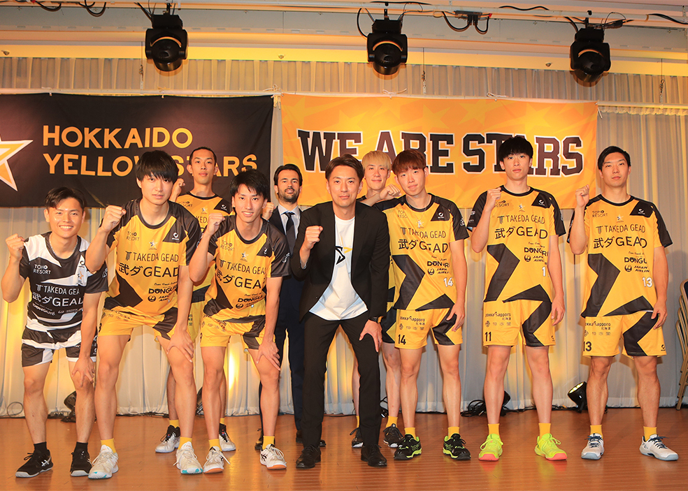 北海道イエロースターズが24日、札幌市内で2025-26シーズンに向けた「新体制発表会」を行った。24―25シーズンは26勝2敗と圧倒的な成績で東地区を制したが、プレーオフセミファイナルで西地区2位のフラーゴラッド鹿児島に敗れた。まずはこの借りを返す。浜崎勇矢監督(37)も「セミファイナルで負けた悔しさはみんな忘れてないと思う」。そして、Vリーグを通過点とし、今度こそSVリーグ昇格を目指す。
