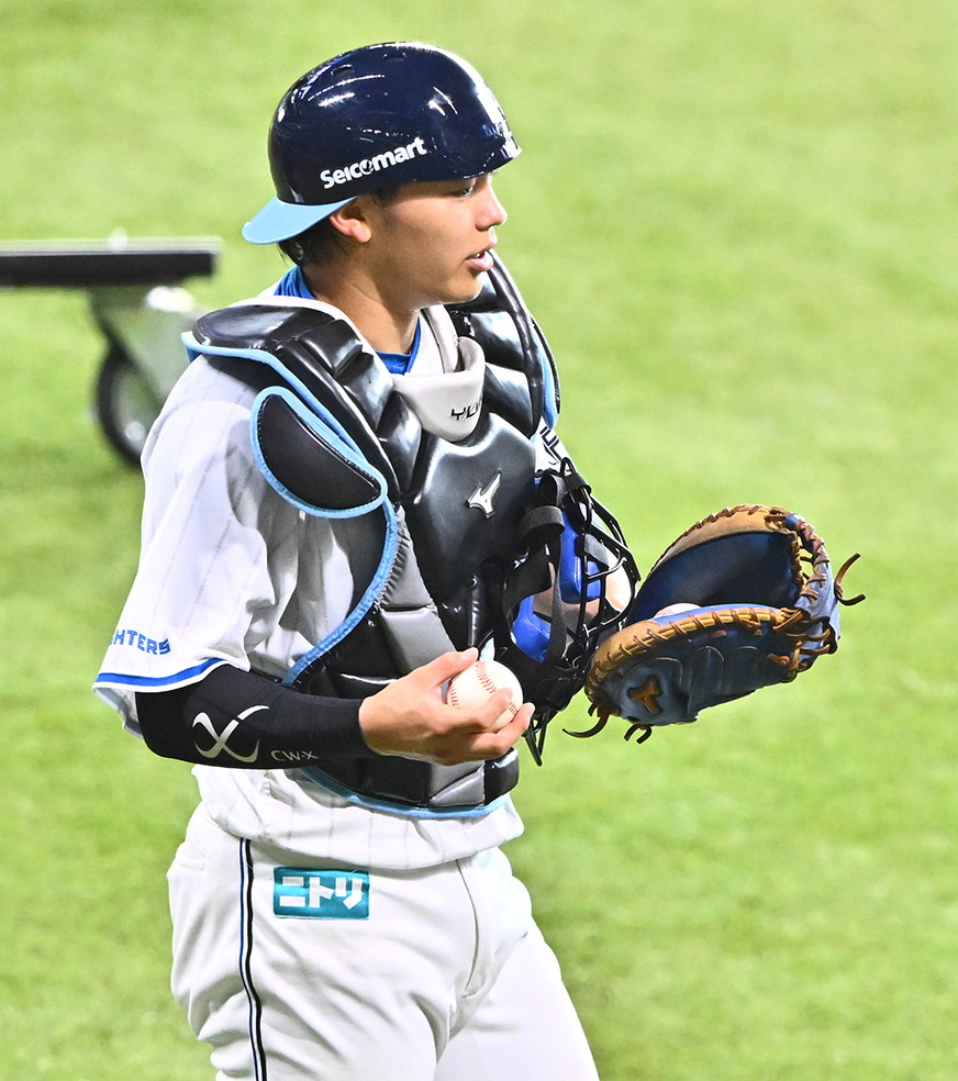二刀流に挑戦するルーキー右腕のデビュー戦。女房役として白羽の矢が立ったのは、経験によるところが大きい。2軍調整中だった5月23日のくふうハヤテ戦でコンビを組み、(八回の)1回を無失点に抑えている。