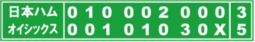 日本ハム2軍は敵地でオイシックスと対戦し、3-5で競り負けた。