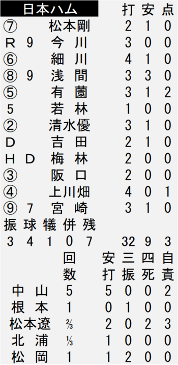 ▼▼▼日本ハムの投打成績は以下▼▼▼