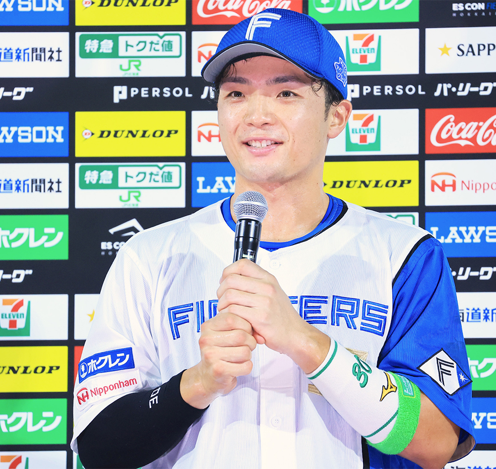 2024年8月1日のオリックス戦後、ヒーローインタビュー受ける郡司