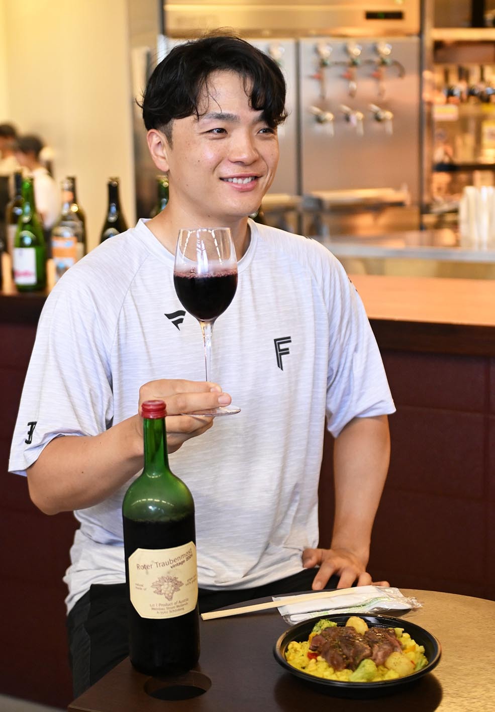 内覧会には〝ワイン愛好家〟の郡司裕也捕手(27)も登場した。フードの試食では、ノンアルコールワインと共に『ふらの和牛ステーキ パエリア風』に舌鼓を打ち「(お肉が)やわらかいですね~。いいぶどうジュースです」とニッコリ。マルティネスの選手グルメ『アリエルボンディガスwithライス』については「さっぱりしたカレーですね。おいしい。さっぱりしたビーフシチュー。ワインに合う。食レポ、難しいな…」と苦笑いだった。さらに、ワイン注ぎ体験にも挑戦。イベント終了後、取材に応じた一問一答は以下の通り。