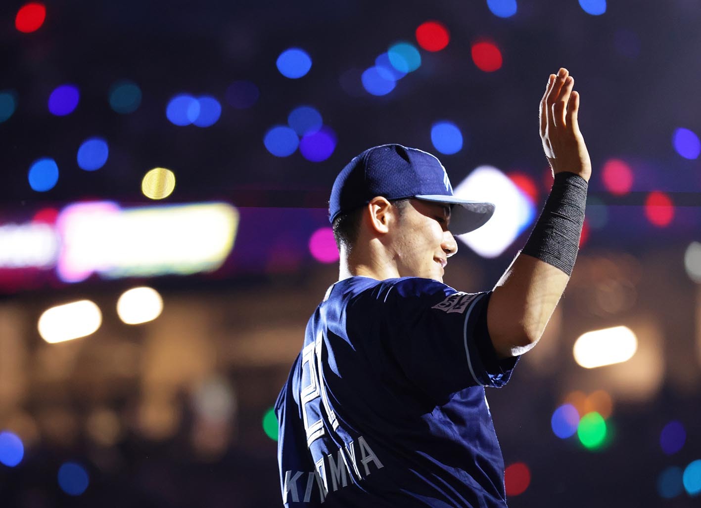 ヒーローインタビュー後、ファンの声援に応える清宮幸