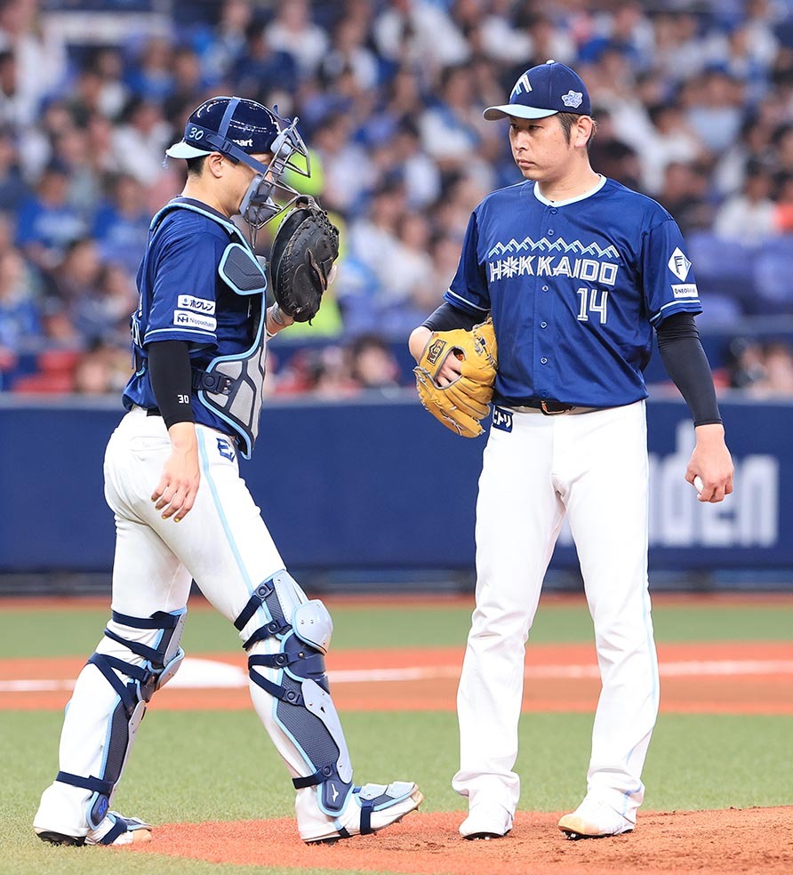 今季初完封は目前だった。2点リードで迎えた九回。球数は110を超え、一、二塁のピンチを招いても続投だった。新庄監督は試合後、継投の可能性を問われ「ないです。ここで踏ん張ってもらわないと。信頼できるピッチャーなので」と言い切った。