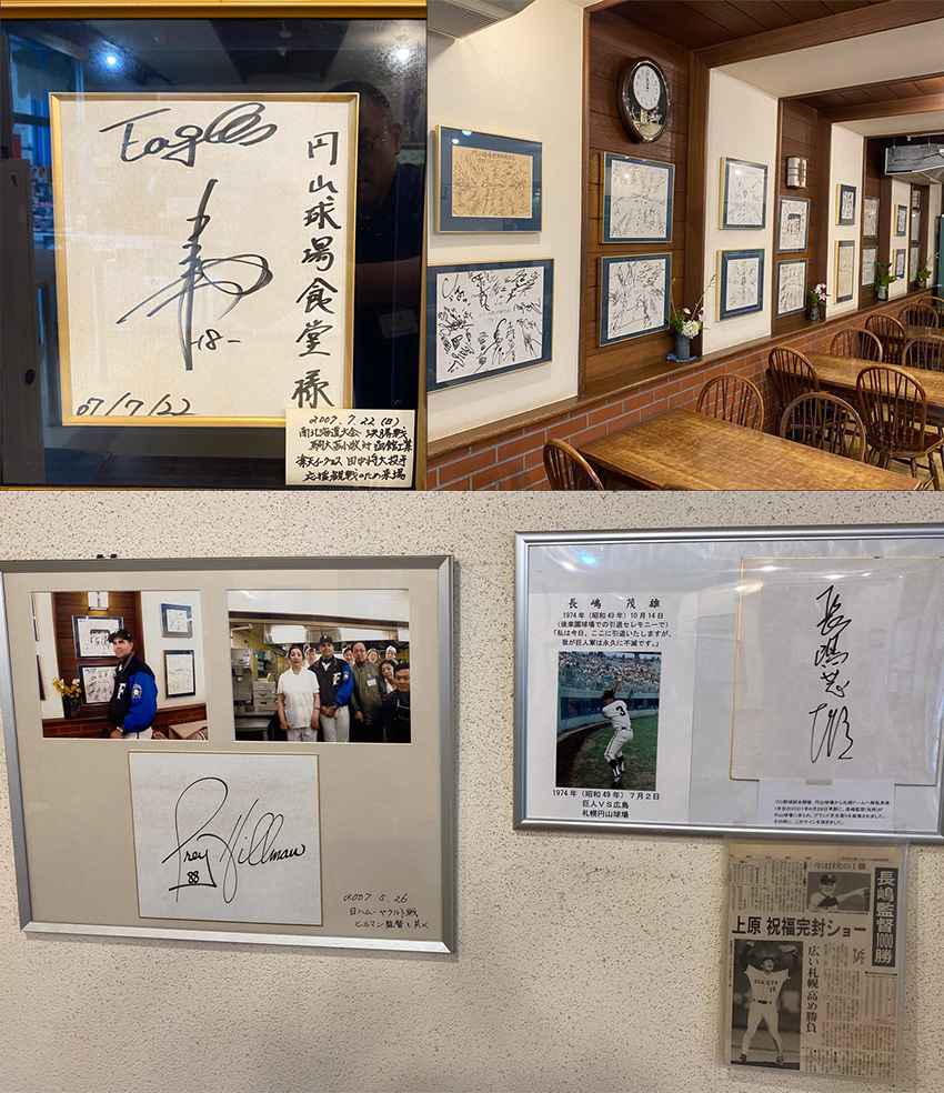 店内には今年6月に亡くなった巨人の長嶋茂雄終身名誉監督や、北海道日本ハム初代監督のトレイ・ヒルマンさん(62)の写真やサインが、所狭しと飾られている。メニューは開業当時からほぼ変わらず。一番人気は「やっぱりカツカレーが人気あります」と井上代表。昔は砂糖をこれでもかというぐらい使った甘口のカレーだったと言うが、現在は数種類のスパイスに、タマネギがたっぷり入った野菜中心の「健康的なカレー」がこだわりだ。全盛期には球場1階の食堂と、2階の出店を合わせ、カレーだけで多い日で4~500食。さらにそばやうどんなどを合わせると1000食が飛ぶように売れた。