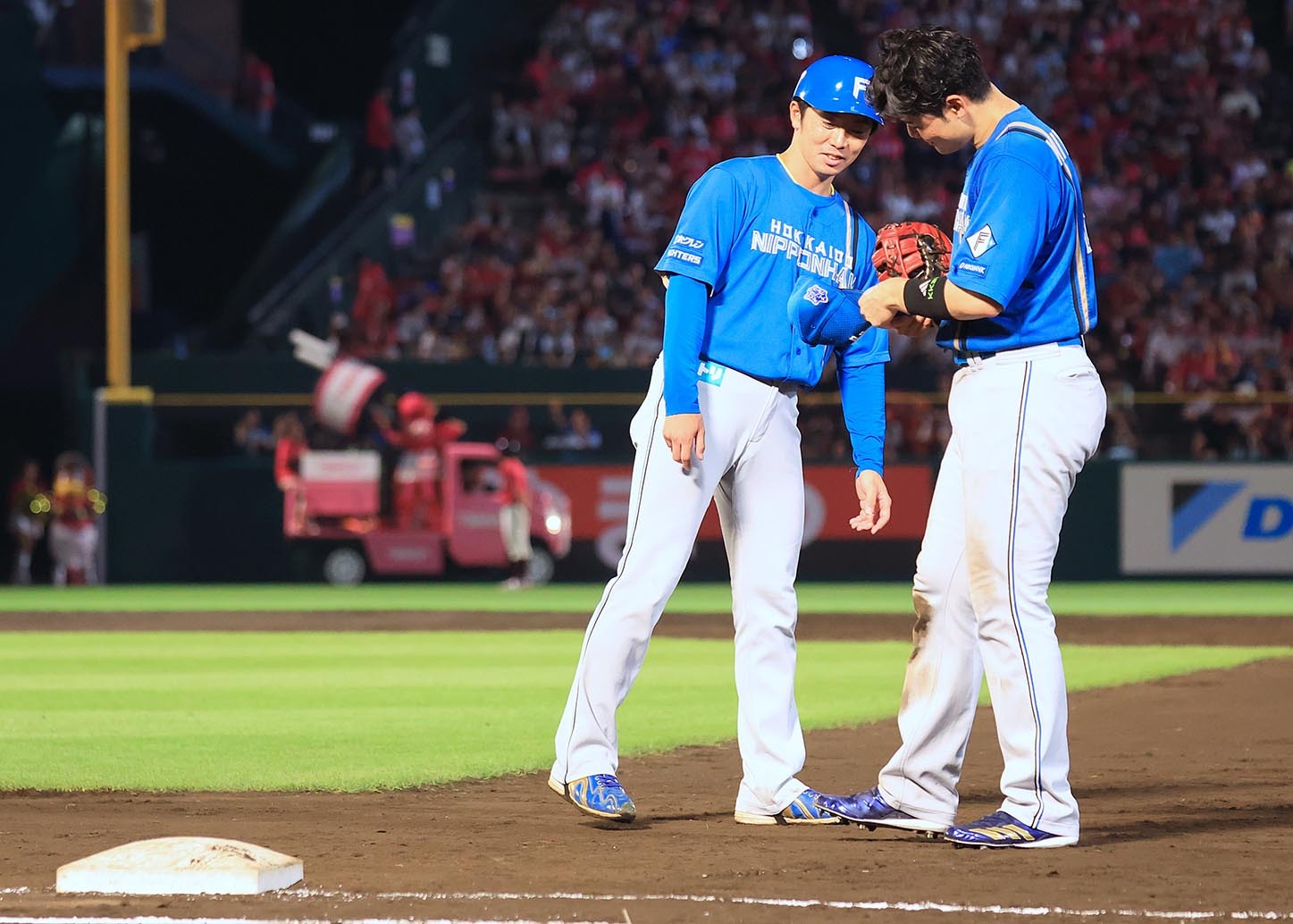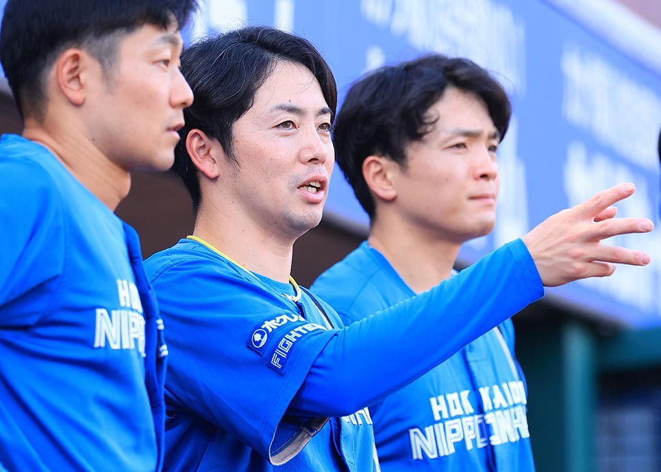 谷内コーチの気遣いに、一塁を守る選手たちは感謝の言葉を伝えてくれる。「ファーストに入る人は全員、言ってくれますよ。ジェイ(野村)もそうだし、(清宮)幸太郎も郡司も言うし。整備している間は、ちょっとした会話もできる。守備の確認したり、バッティングはこうだねとか。いい感じだから次、頑張れよと、そういう話もできるのでちょうどいいです」と、コミュニケーションの場にもなっているという。