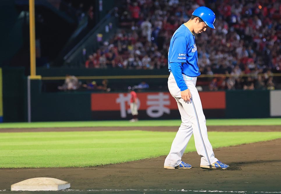 一塁コーチャーを務める日本ハムの谷内亮太内野守備走塁コーチ(34)には、攻守交代時の〝ルーティン〟がある。日本ハムの攻撃が終わると、毎回一塁ベース付近の土をならしてからベンチへ戻っている。
