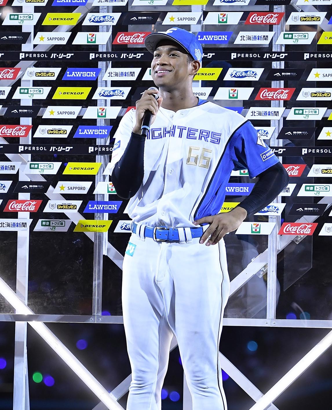 日本ハムの万波中正外野手(25)が七回、勝ち越しの第19号ソロを右翼席へ放り込んだ。不振に苦しむ中、大事な場面で飛び出した32打席ぶりの一発。仲間たちから祝福され、喜びを爆発させた。ヒーローインタビューと取材に応じた一問一答は以下の通り。