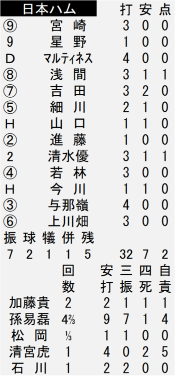 ▼▼▼日本ハムの投打成績は以下▼▼▼