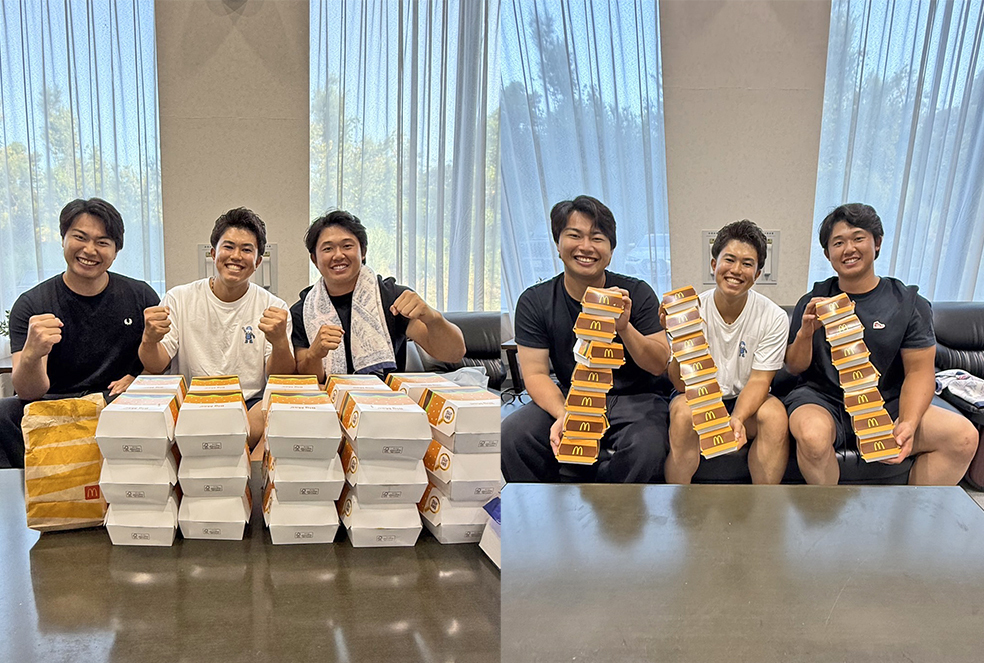 休日だった前日25日、鎌ケ谷の寮で〝ビッグマックチャレンジ〟が行われていた。数年前、万波がマクドナルドのビッグマックを10個平らげ、伝説に。その言い伝えを聞いた今川が「僕が負けていられないなと。大食いの選手を集めてやろうかって、ビッグマックを30個くらい買ってきました」と主催したという。