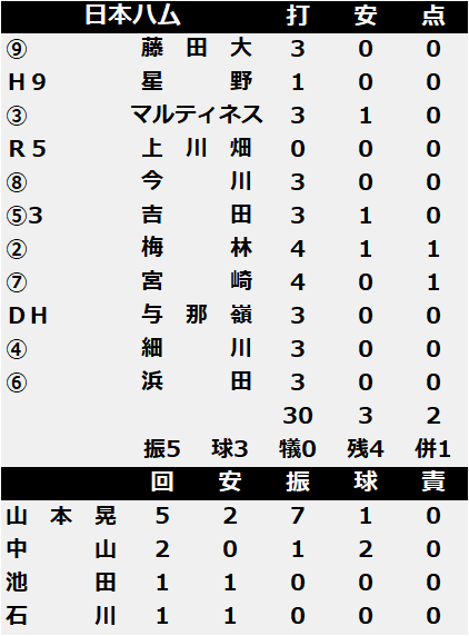 ▼▼▼日本ハムの投打成績は以下▼▼▼