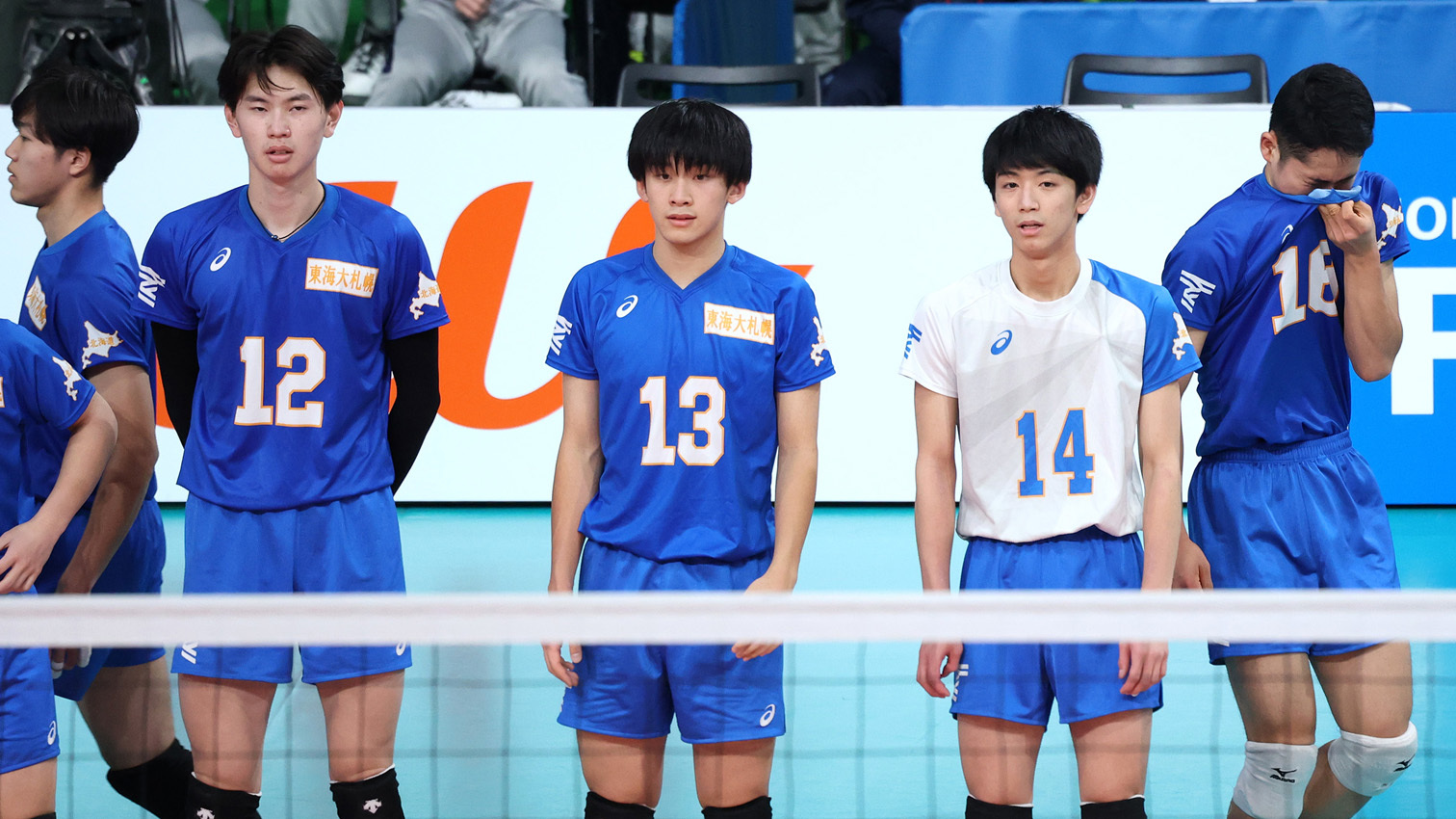 男子3回戦が行われ、東海大札幌高は1―2で高松工芸(香川)に逆転負け。夏季開催だった2003年以来の8強入りを逃した。第1セットを奪ったが、210センチの相手エース・牧大晃(3年)に計30得点を許すなど2セットを連取された。新チームで主将を任されるエースの山田祐輝(2年)は来年のリベンジを誓った。