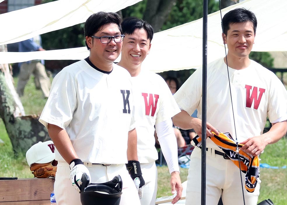 決勝を戦った選手がズラリと名を連ねた。早実は海外から参戦するメンバーもいたように、当時のスタメンに名を連ねていた8人が集まった。駒大苫小牧も6人を擁し、2校による〝同窓会〟は活気にあふれた。早実が一回から4番・後藤貴司さんの適時内野安打で先制すると、1番・川西啓介さんの3ランなどで一挙8得点で主導権を握った。駒大苫小牧も千両役者たちがバットで見せた。2006年の決勝で斎藤さんから本塁打をマークした三木悠也さんと中澤竜也さんが、この試合でも柵越え本塁打。これには7回110球で完投勝利を挙げた斎藤さんも「本当に悔しい」。それでも少年野球用球場のはらっぱスタジアムで、白球を追う元球児たちは常に笑顔だった。OB戦開催に尽力した斎藤さん、本間さんは「楽しかった」と声を揃えた。