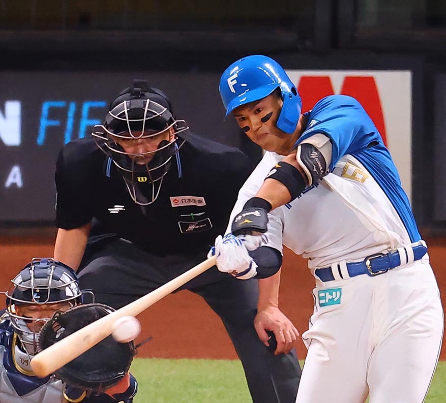 日本ハムは本拠地のエスコンフィールド北海道でオリックスと対戦し、16安打の猛攻で10―4と大勝した。首位のソフトバンクがロッテに敗れたため、ゲーム差を「2」に縮めた。ソフトバンクの優勝マジックは「15」のまま。