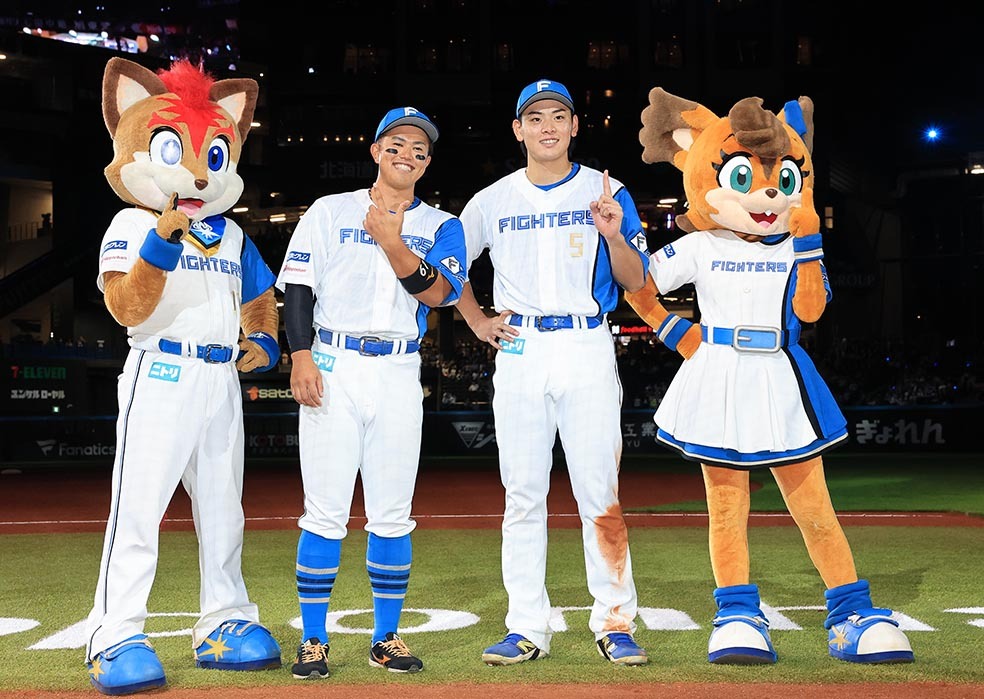 「おとといのヒーローインタビューで、ファイターズが大好きですということを伝えさせてもらったんですけど、ちょっと撤回させてもらっていいですか。僕、ファイターズ、なまら大好きです!残り16試合、全部、勝つつもりでいくんで、毎試合毎試合、本当に熱いご声援どうかよろしくお願いします」