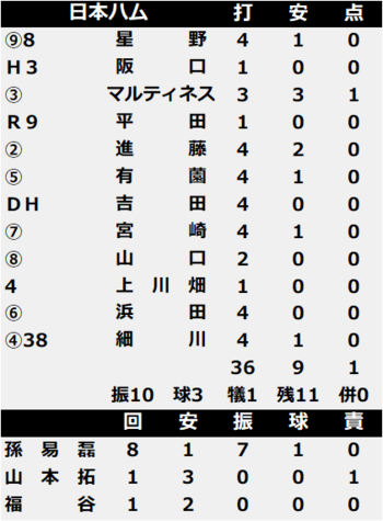 ▼▼▼日本ハムの投打成績は以下▼▼▼