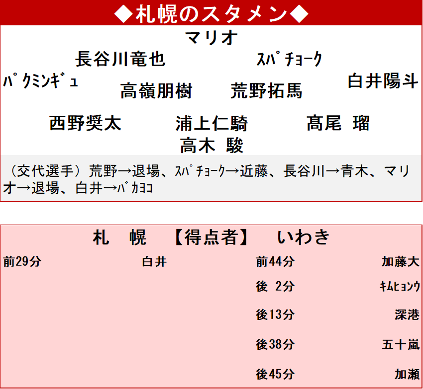 北海道コンサドーレ札幌はいわきFCとホームで対戦し、2人が退場するなどして1-5の大敗を喫した。