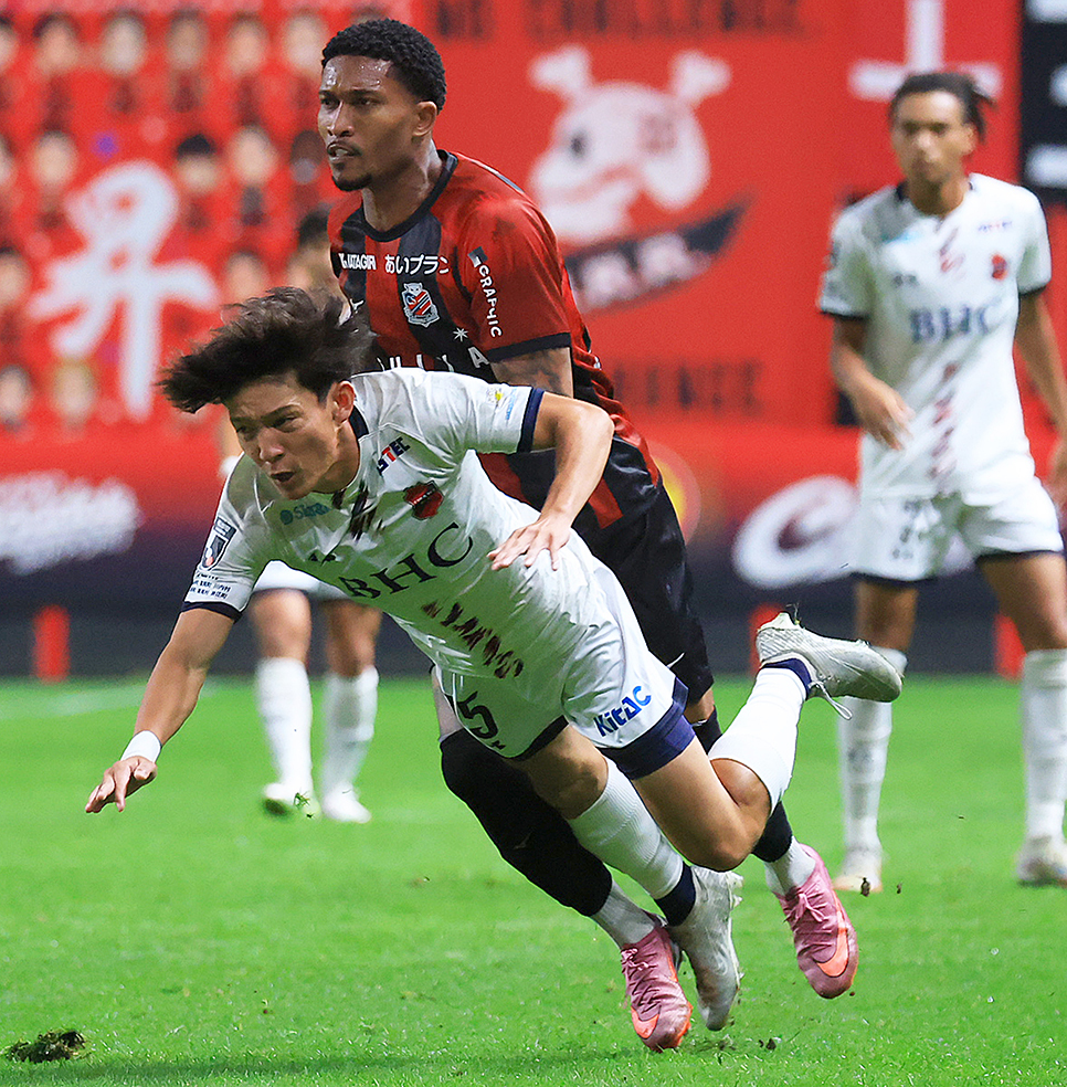 しかし、そこから落とし穴が待っていた。同36分、DFパクミンギュ(30)が左サイドで相手MF五十嵐に吹っ飛ばされながら突破されると、カバーに入ったボランチのMF荒野拓馬(32)がタックルしてカット。わずかに相手の足にも掛かったように見えたが、至近距離で見ていた主審は著しく不正なプレーと判断し、レッドカードの提示。一発退場となってしまった。