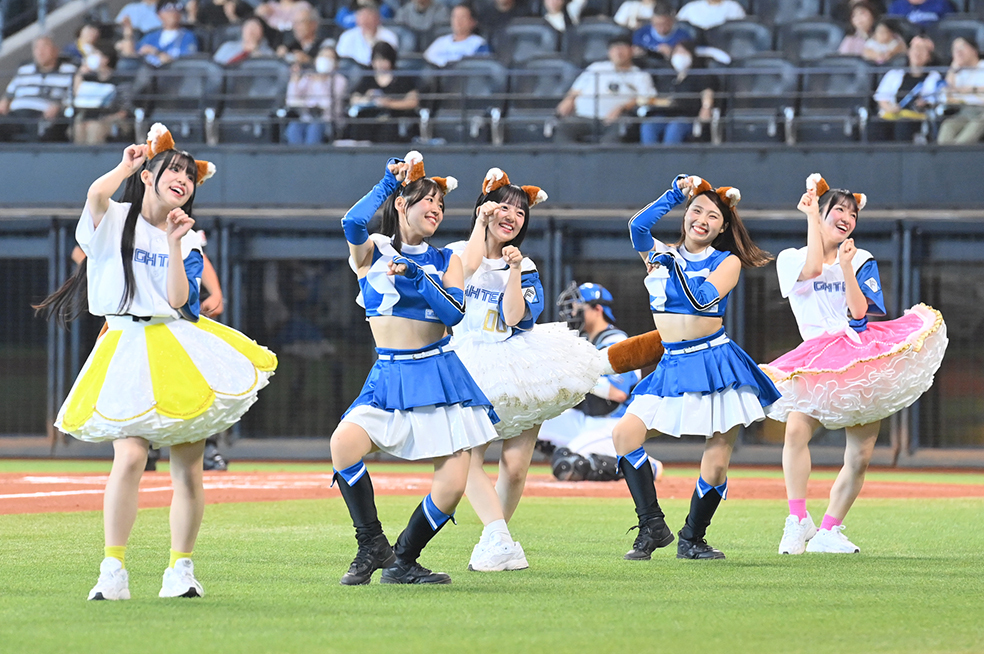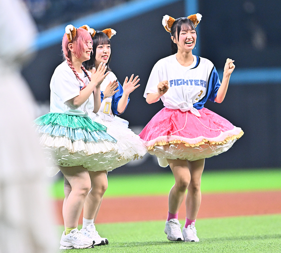 初来場となったエスコンについて、藍井すずは「とにかく開放感がすごくて、天井高っ!って。こんな所で野球できたら人生楽しいだろうな。すてきだなと思いました」と目をキラキラ。ファイターズガールと一緒に「きつねダンス」にも参加し、橋本あみは「SNSでもバズっていてずっと見ていたので、踊れてすごい楽しかったです。会場を見渡して、たくさんのお客さんがいて、貴重な経験ですごい幸せな気持ちになりました」と大喜びだった。