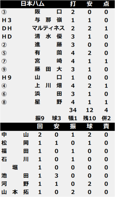 ▼▼▼日本ハムの投打成績は以下▼▼▼