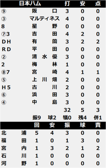▼▼▼日本ハムの投打成績は以下▼▼▼
