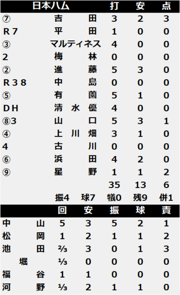 日本ハム2軍はオイシックスと敵地で対戦し、6-7のサヨナラ負けを喫した。