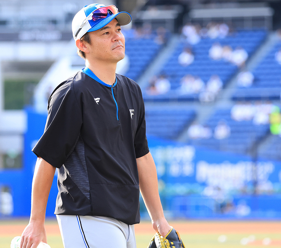 「基本的に波がない」のが持ち味の右腕だが、武田コーチには印象に残っている試合がある。最大7点差から逆転勝利を挙げた6月15日の広島戦(エスコン)だ。2点差に追い上げた直後の九回。マウンドに上がった玉井は、わずか9球で3者凡退に封じ込めた。