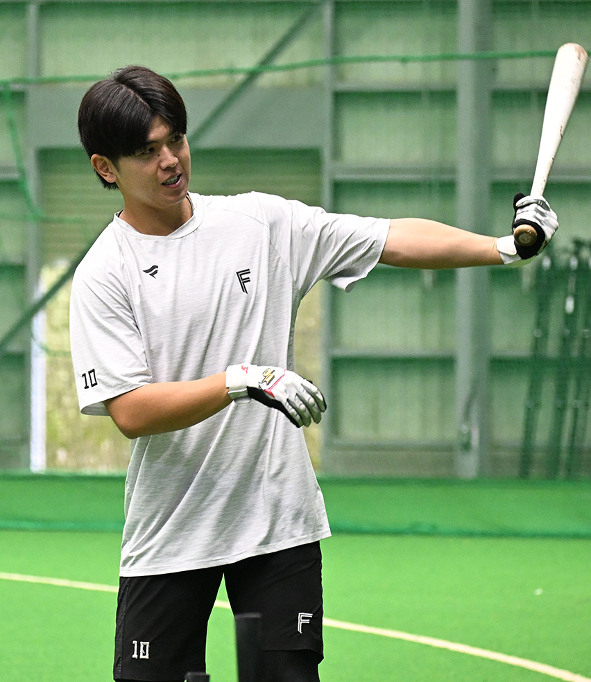 ただ、猛暑に見舞われた夏場だろうと、練習で手を抜いたことはない。2軍はすでに全日程を終えたが、今月1日も鎌ケ谷で全体練習後、1人黙々と動画を確認しながらバットを振り続けた。