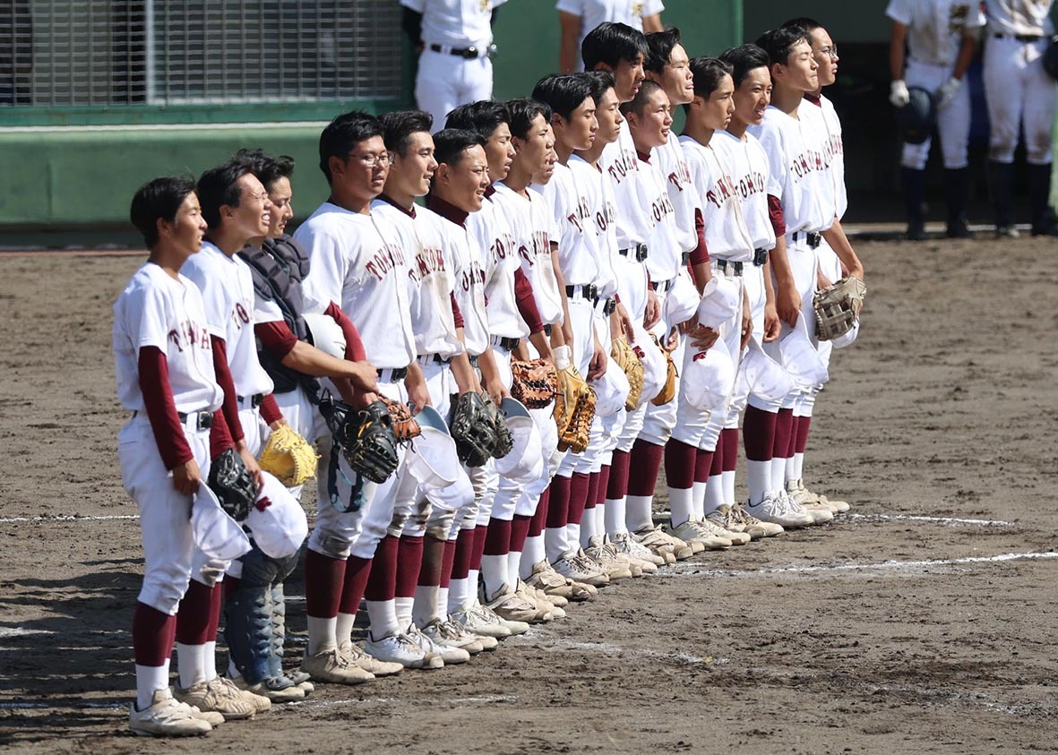 古豪が復活の凱歌だ。1点差に迫られた九回2死満塁。一打サヨナラのピンチが続いていたが、最後はエース藤川晴矢(2年)が遊飛に打ち取りゲームセット。「9番・二塁」で先発出場した今野和雄主将(2年)は四回と六回に2本の適時打で3打点をたたき出し、「先輩たちも浦河に逆転負けして全道を逃した。そういう面では一番うれしい勝ち方ができた」と声を弾ませた。