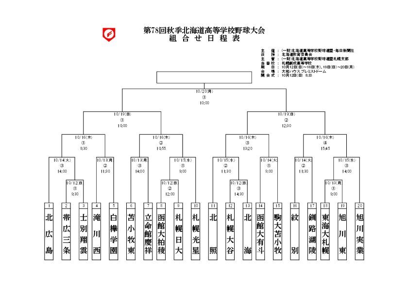 来春の選抜甲子園出場につながる12日開幕の秋季全道高校野球の組み合わせ抽選会が、会場となる札幌・大和ハウスプレミストドームで行われた。夏の南北海道代表の北海は12日の1回戦で札幌大谷と、10年ぶり出場の旭川東は13日の1回戦で今春の選抜甲子園代表校の東海大札幌高と対戦する。両校主将の意気込みは以下の通り。