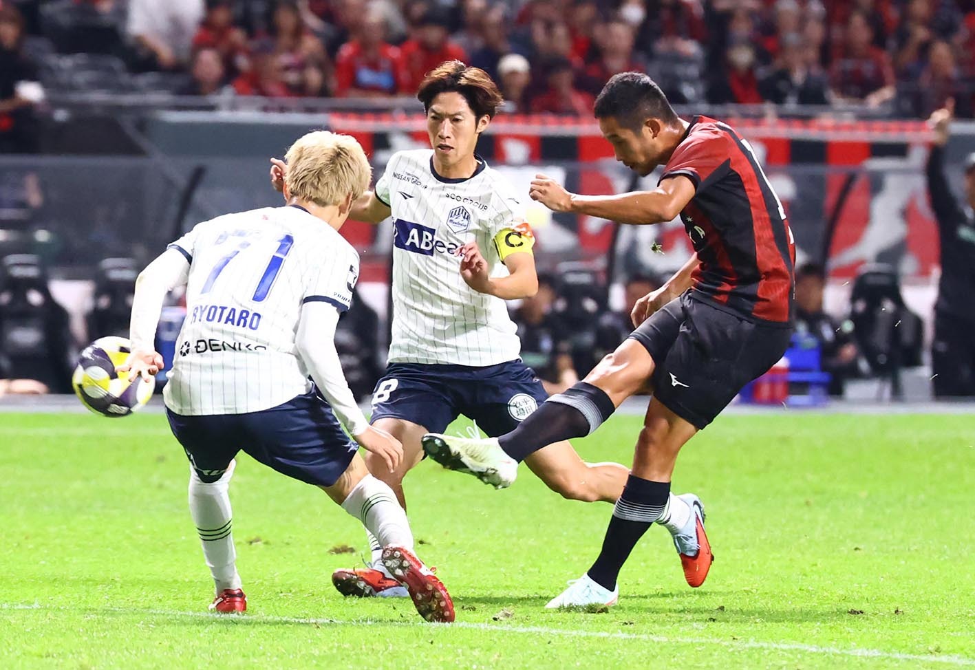 逆に同21分にはGK高木駿(36)のパスミスを拾われ、相手のキーマン、MF土居聖真(33)にシュートを打たれたが、これは高木が自ら左足でファインセーブ。直後の相手の右CKはヘッドで合わせられ、中村の頭をかすめながらゴール右上隅にボールが流れたが、ここも高木が左手一本でビッグセーブし、何とか凌いだ。