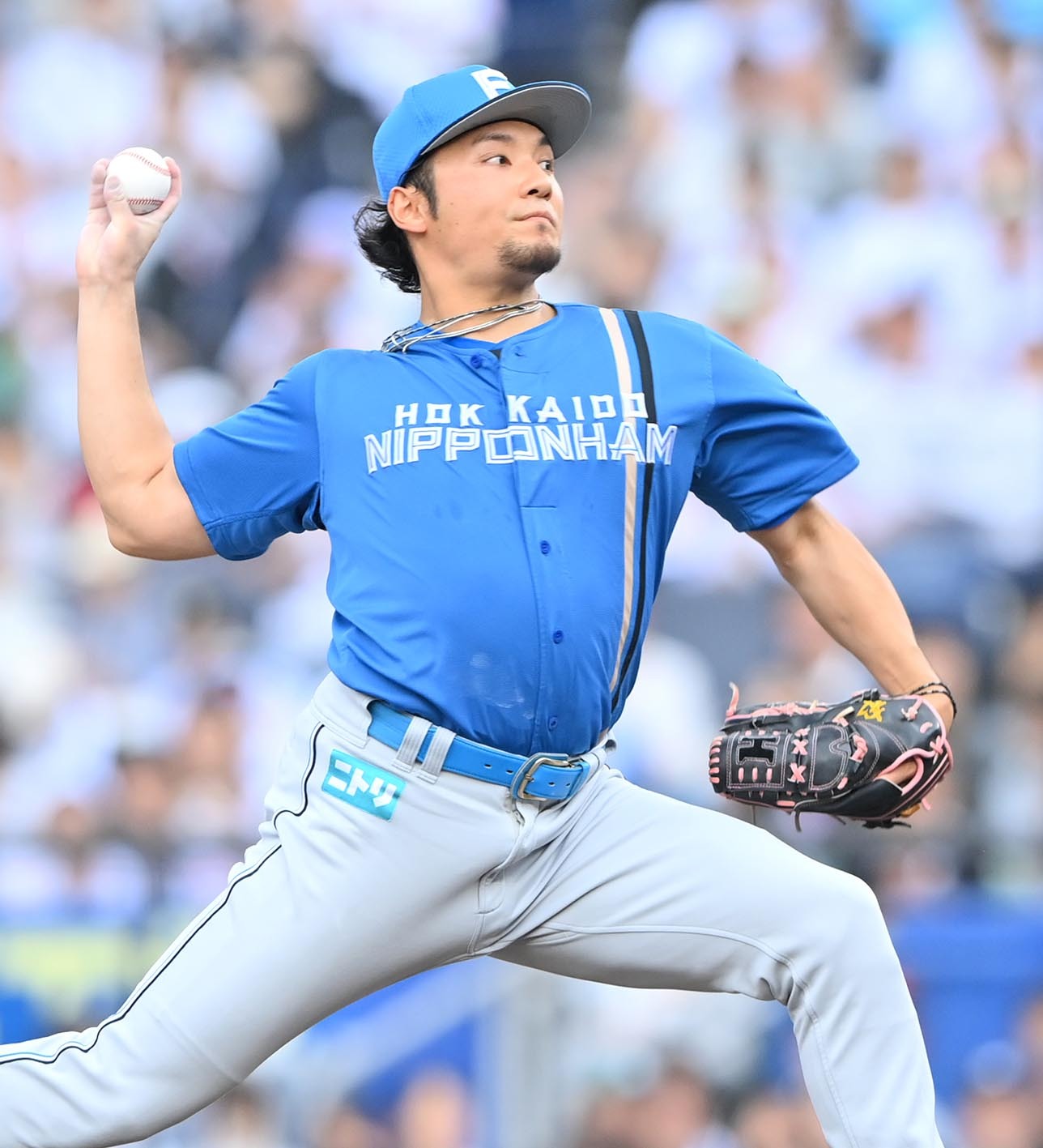「15勝」は新庄監督と〝約束〟した数字でもあった。今季は順調に勝利を積み重ね、前半戦最後の登板となった7月19日の楽天戦で2桁勝利に到達。指揮官とSNSなどでやりとりをしているうちに、目標が上方修正されていた。「17勝って、いつの間にか変わっていました。監督も最初の方は15と言っていたんですけど、途中から17と。背番号分、勝てと」